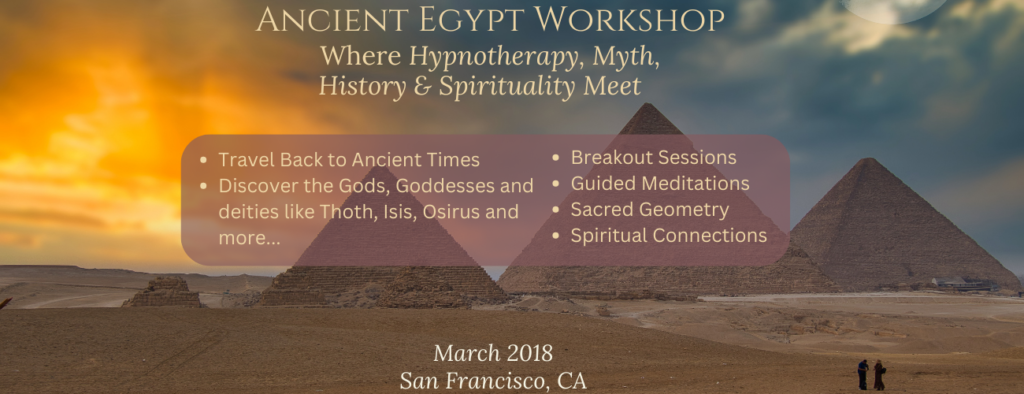 Ancient Egypt is filled with mystery, from gods and goddesses, pyramids, temples, rituals, ceremonies, and legends that many believe to be real. Embark on a journey to learn more through history, archeology, and sacred geometry followed by hypnotherapy for the group to tap into your inner gnosis at a deep level.